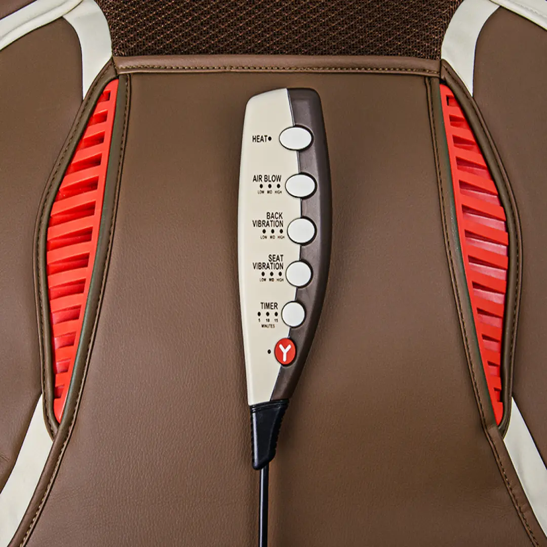 Главное достоинство массажной накидки Yamaguchi Drive - в необычном строении её поверхности. Она пронизана специальными каналами, подающими прохладный воздух к телу. Благодаря вентиляция (с 3-мя уровнями интенсивности) возникает особый микроклимат, который позволяет как следует взбодриться в знойный день и насладиться сеансом массажа. Вы можете выбрать глубокий вибромассаж спины (Back Massage) и ягодиц (Seat Massage) - он устранит спазмы и отёчность, или прогревание (Heat), которое снимет напряжение с мышц и избавит от болезненных ощущений.