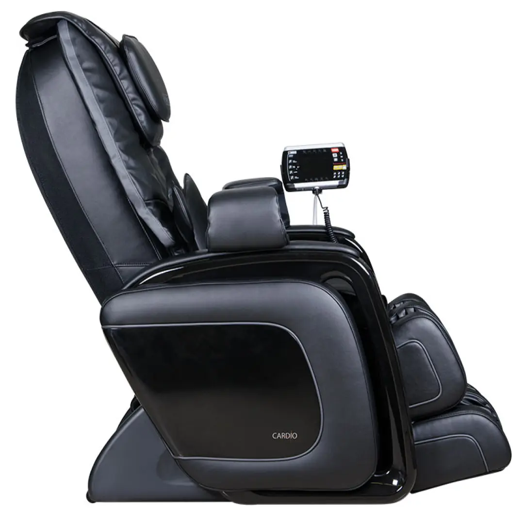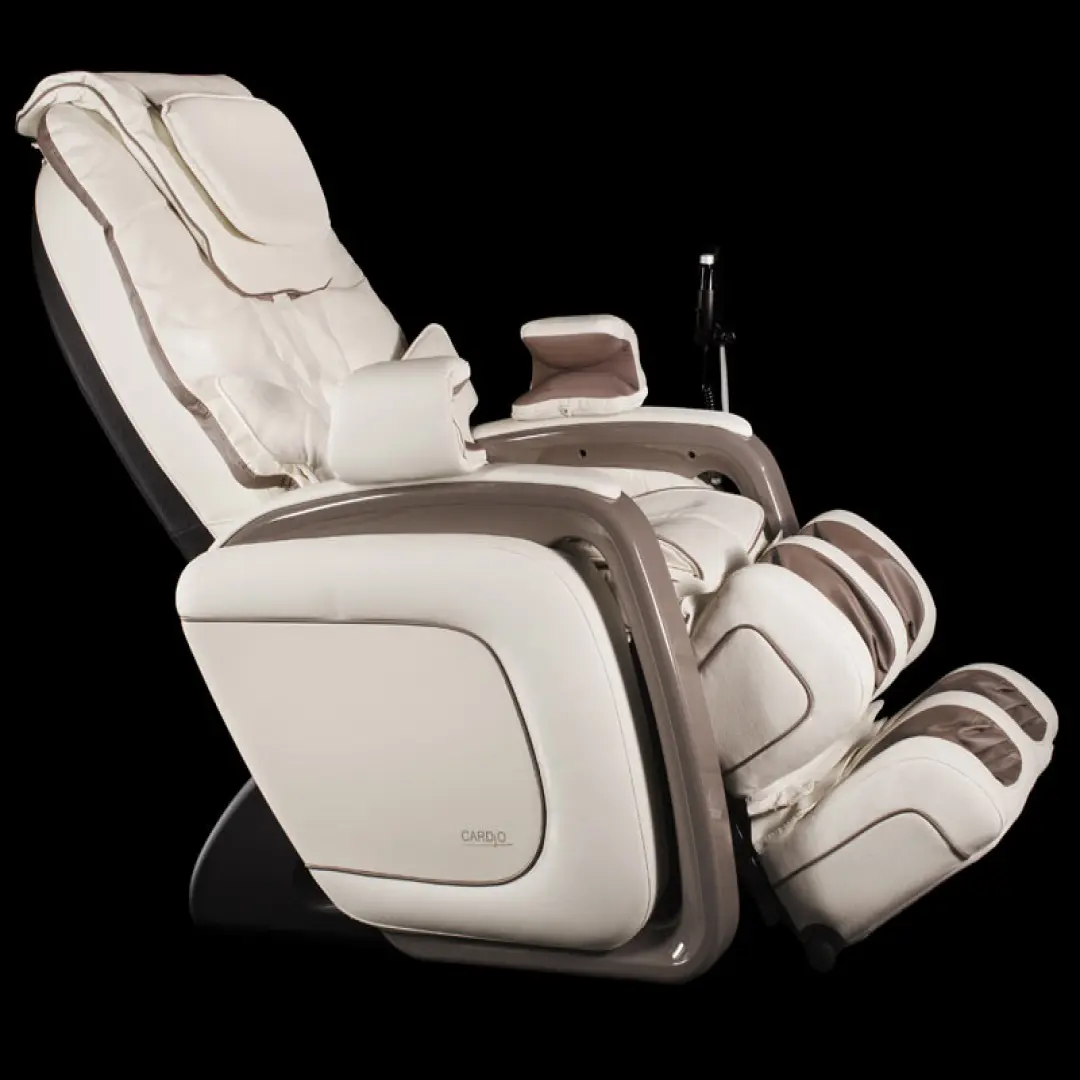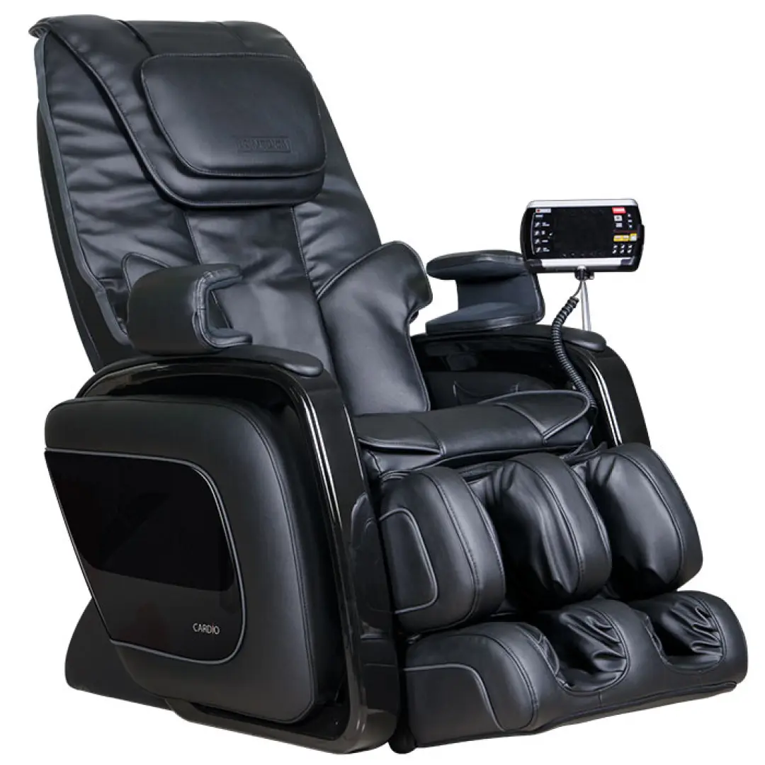 Массажное кресло Cardio выполняет интеллектуальный массаж благодаря встроенному микрокомпьютеру, полностью контролирующему работу массажных механизмов. Интенсивность воздействия, чередование разных видов воздействия: похлопывания, постукивания, разминания массажными роликами, компрессионного массажа воздушными подушками; выполнение процедур, способствующих восстановлению обмена веществ, улучшению кровообращения и снятия спазмов мышц, вызывающих болезненные ощущения – любое действие массажного кресла учитывается микрокомпьютером.
