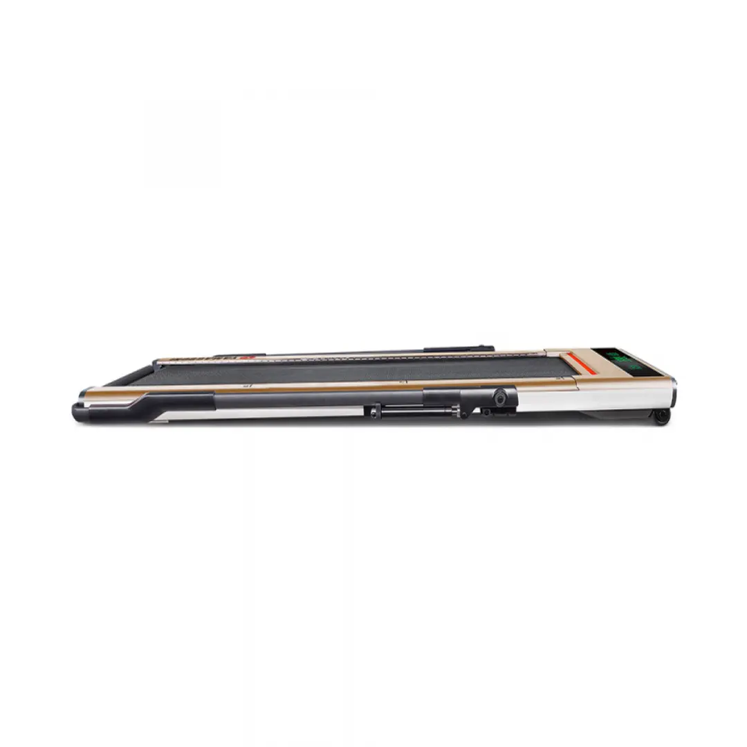 Наибольшим преимуществом представленное беговой дорожки является, конечно же, ее невероятная компактность и легкость. Так, вес устройства составляет всего 29 килограммов, а максимальная нагрузка — аж 100 кг. Поэтому устройство можно легко хранить под кроватью или возле стены. Длина бегового полотна беговой дорожки составляет 120 сантиметров, что позволяет совершать тренировки как в интенсивном темпе, так и в спортивной ходьбе. Из технических достоинств можно выделить следующие: