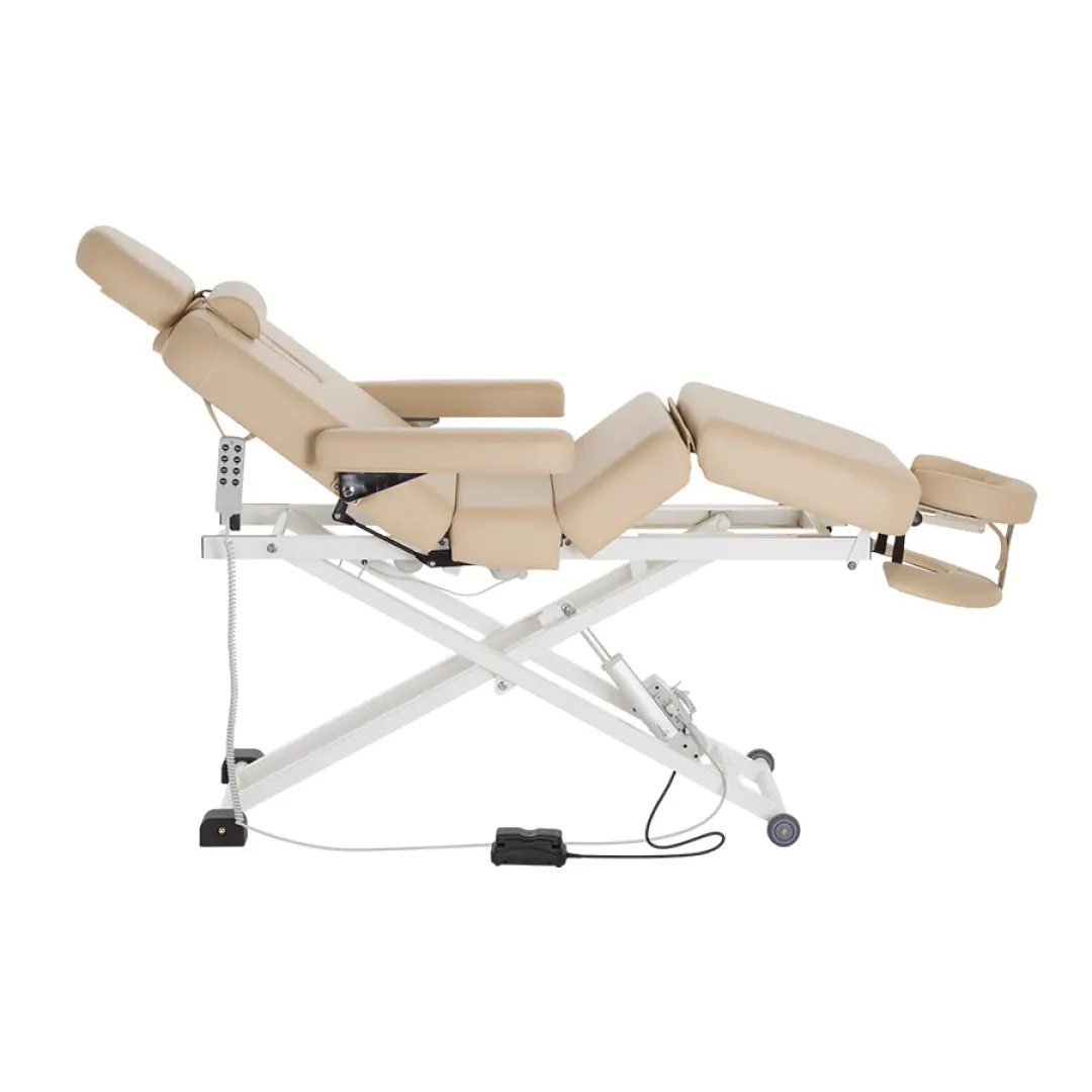 | Отличительные особенности | Электрический подъемник рабочей поверхности; Автоматизированная регулировка секций через пульт управления; Изменение высоты стола при помощи ножной педали; Люверс в столешнице; Колесики и стоперы для удобной транспортировки; Комфортная подушка подголовника ComfortEye. |