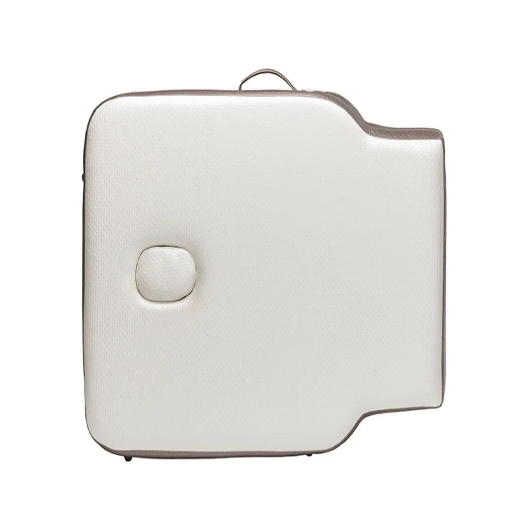 Для крепления съемного подголовника может использоваться как подъемная, так и противоположная секция. Массажный стол Anatomico Verona может комплектоваться полкой для рук, заглушкой для лицевого люверса, а также надежной и удобной сумкой-чехлом.